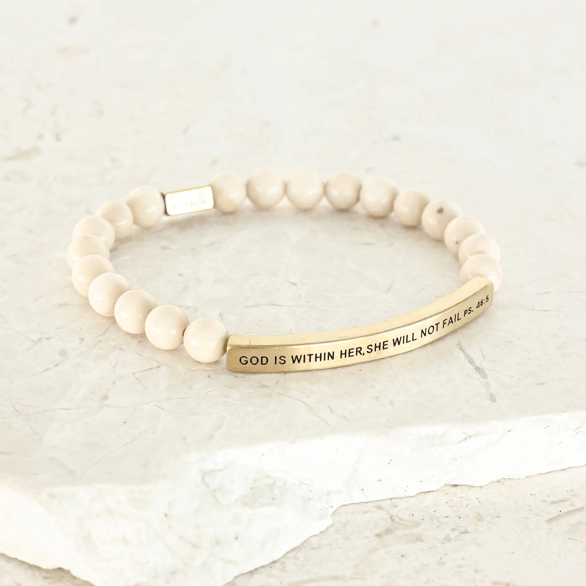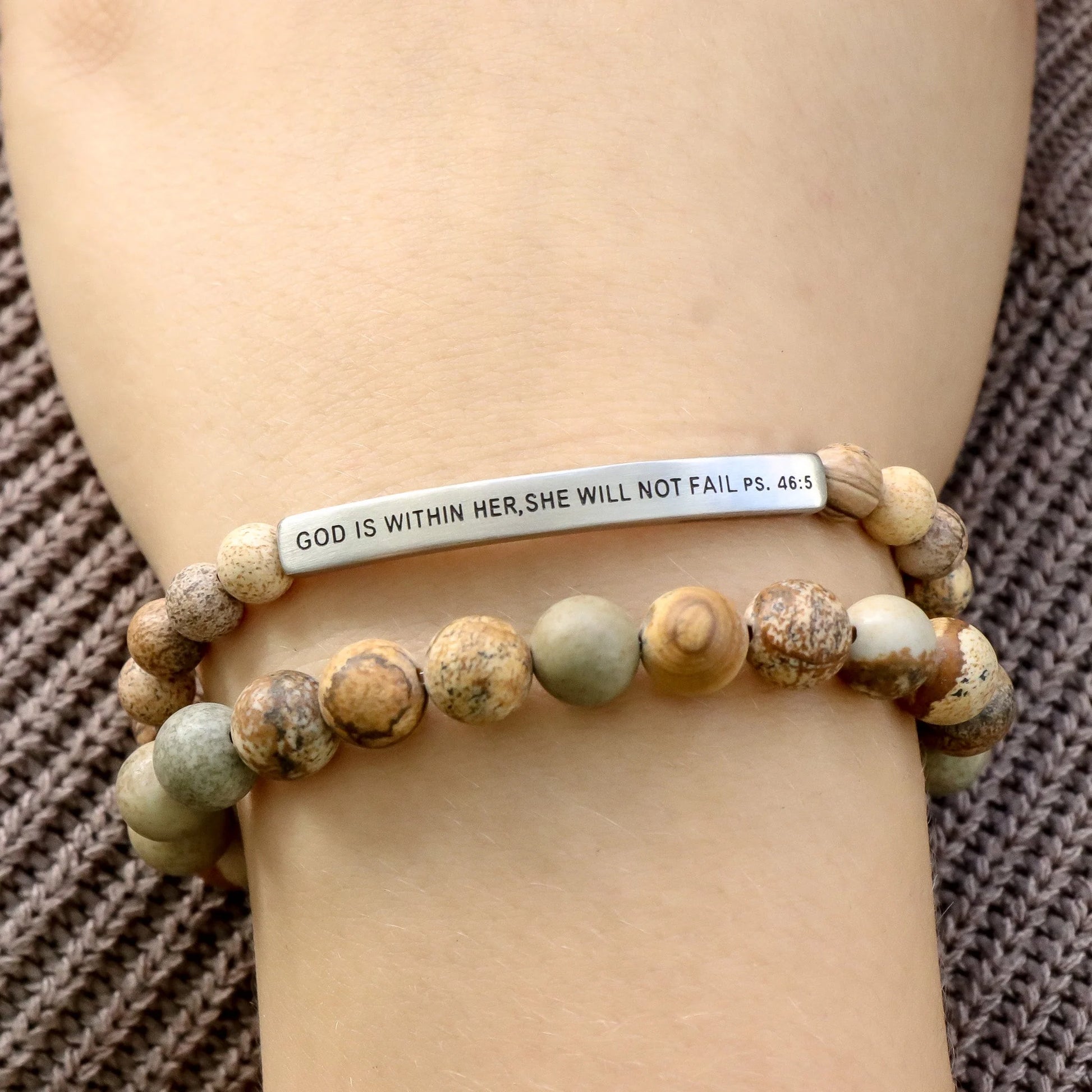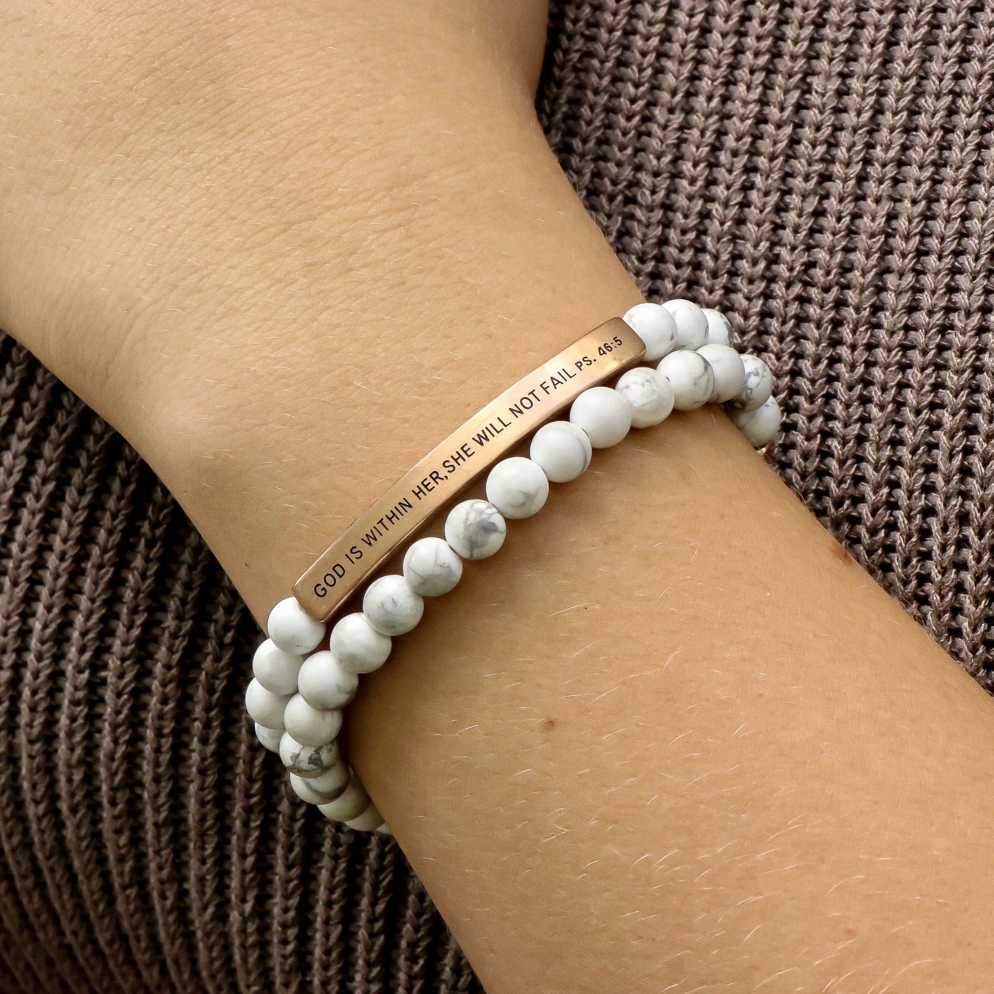 Our inspiration bracelets are beautiful reminders, crafted with 100% all-natural earth stone beads and an engraved stainless steel bar. Wear them throughout the day as a source of inspiration.
