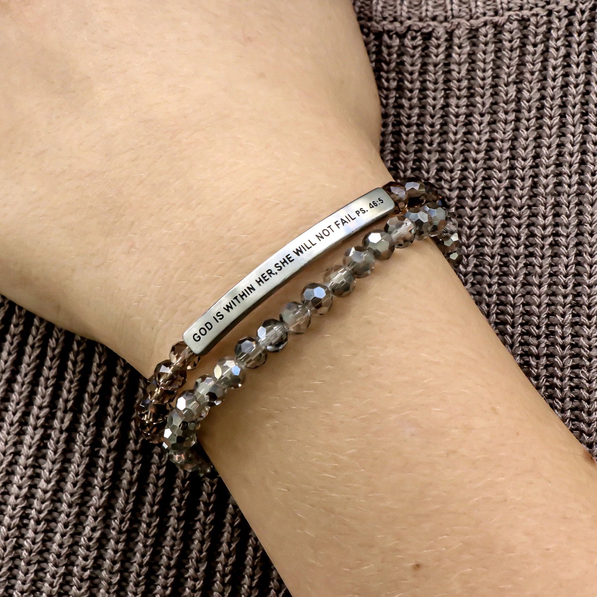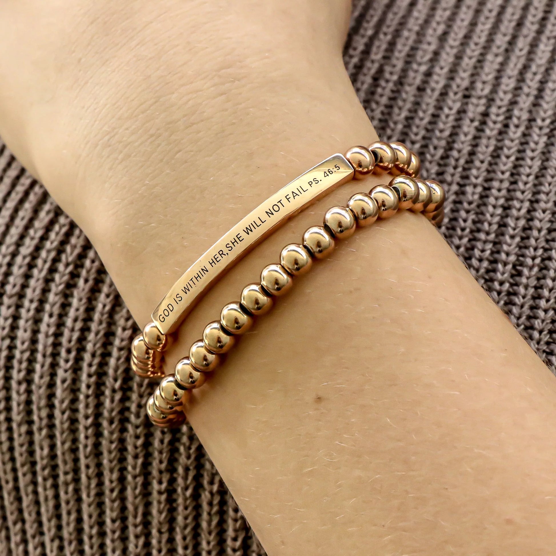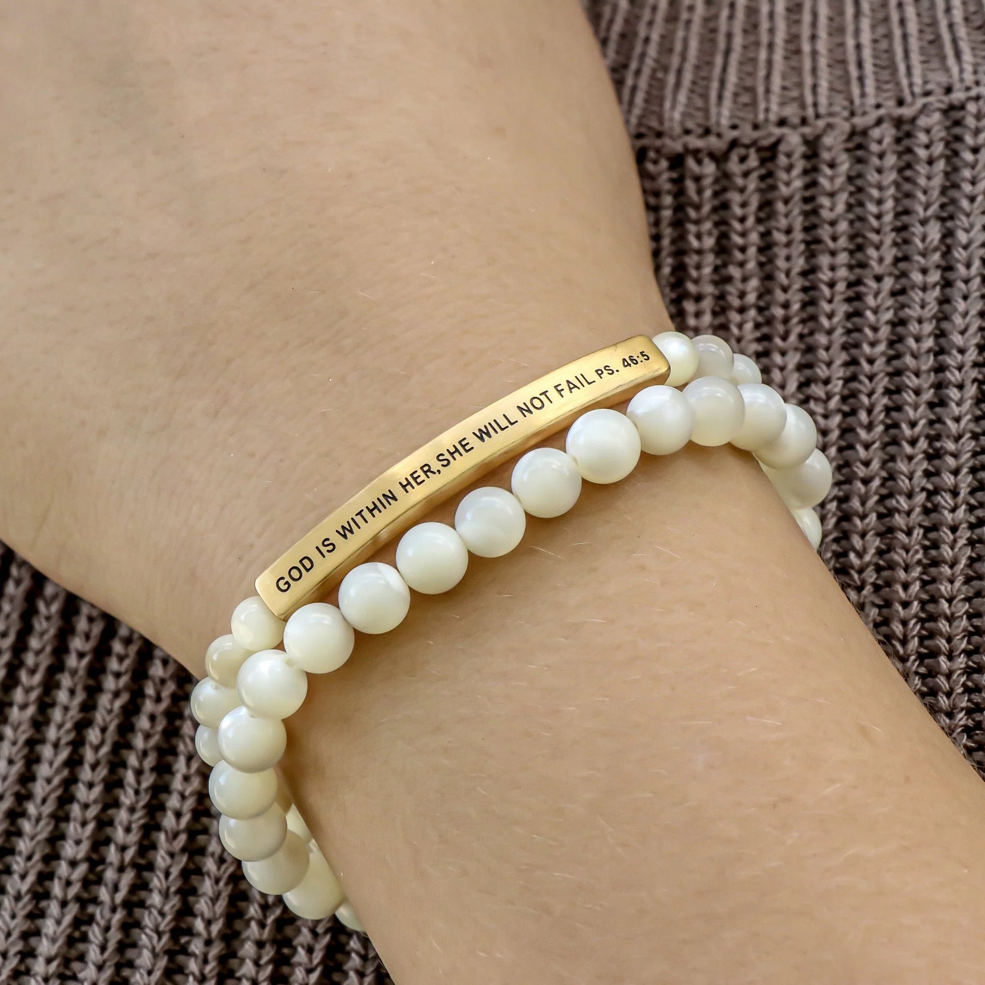 Our inspiration bracelets are beautiful reminders, crafted with 100% all-natural earth stone beads and an engraved stainless steel bar. Wear them throughout the day as a source of inspiration.