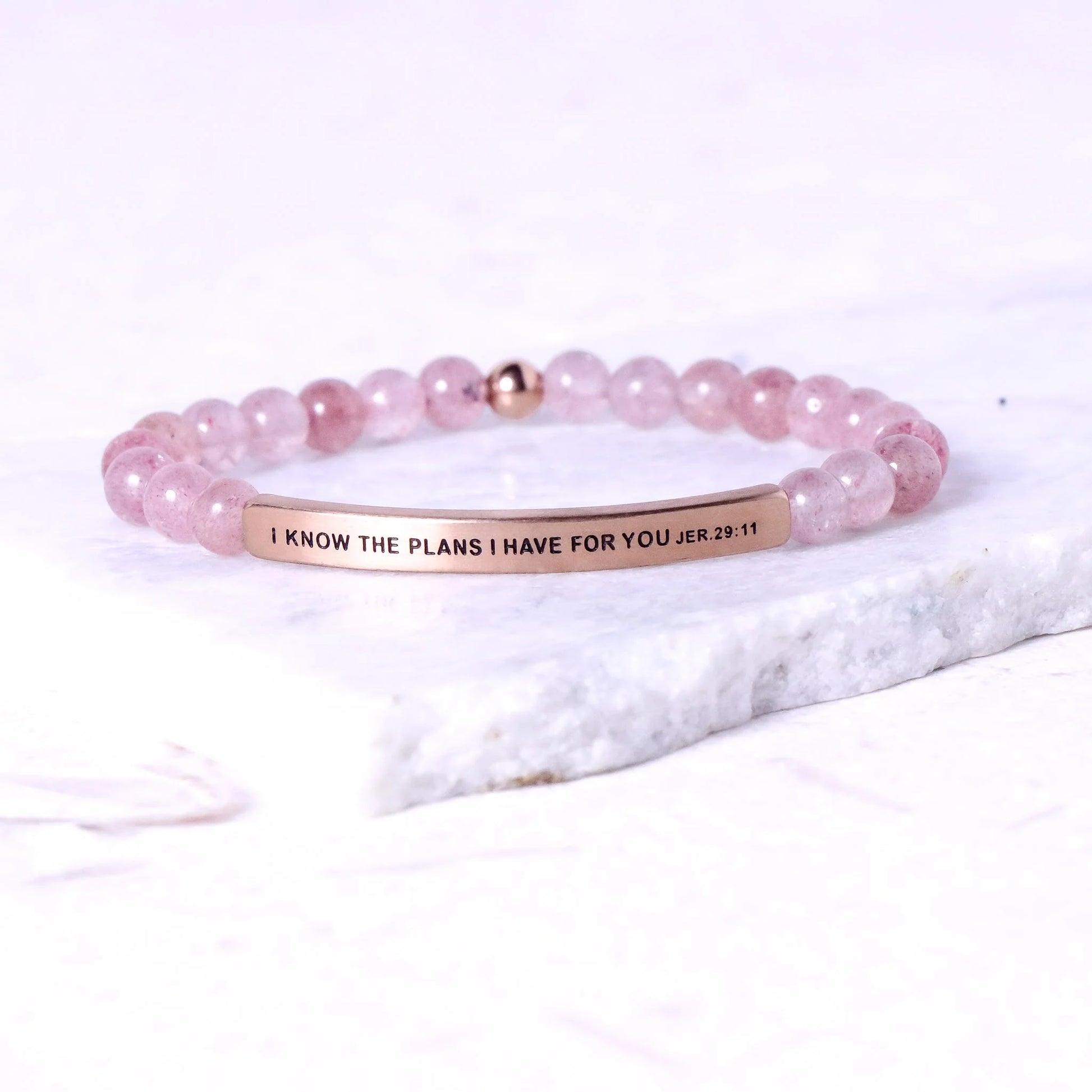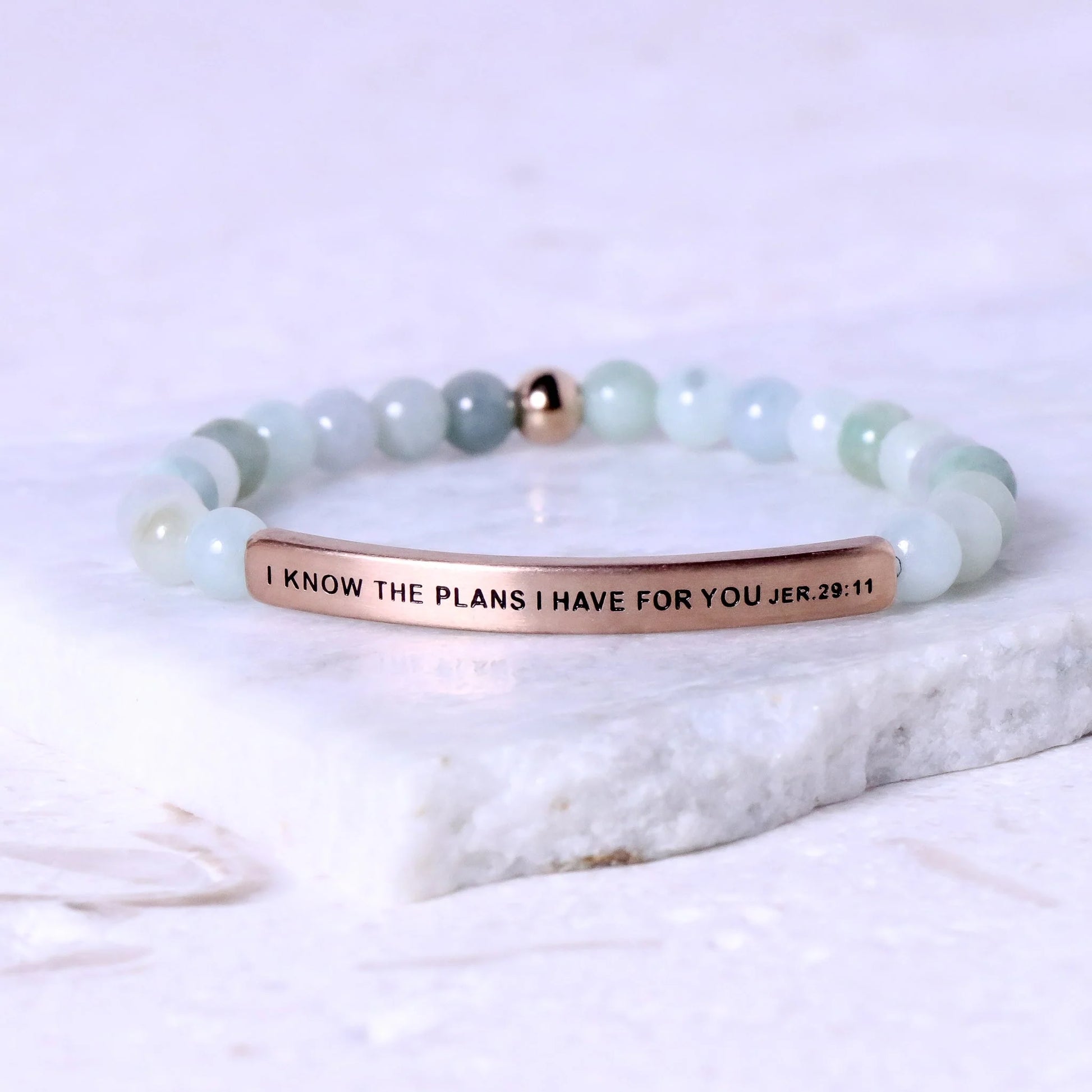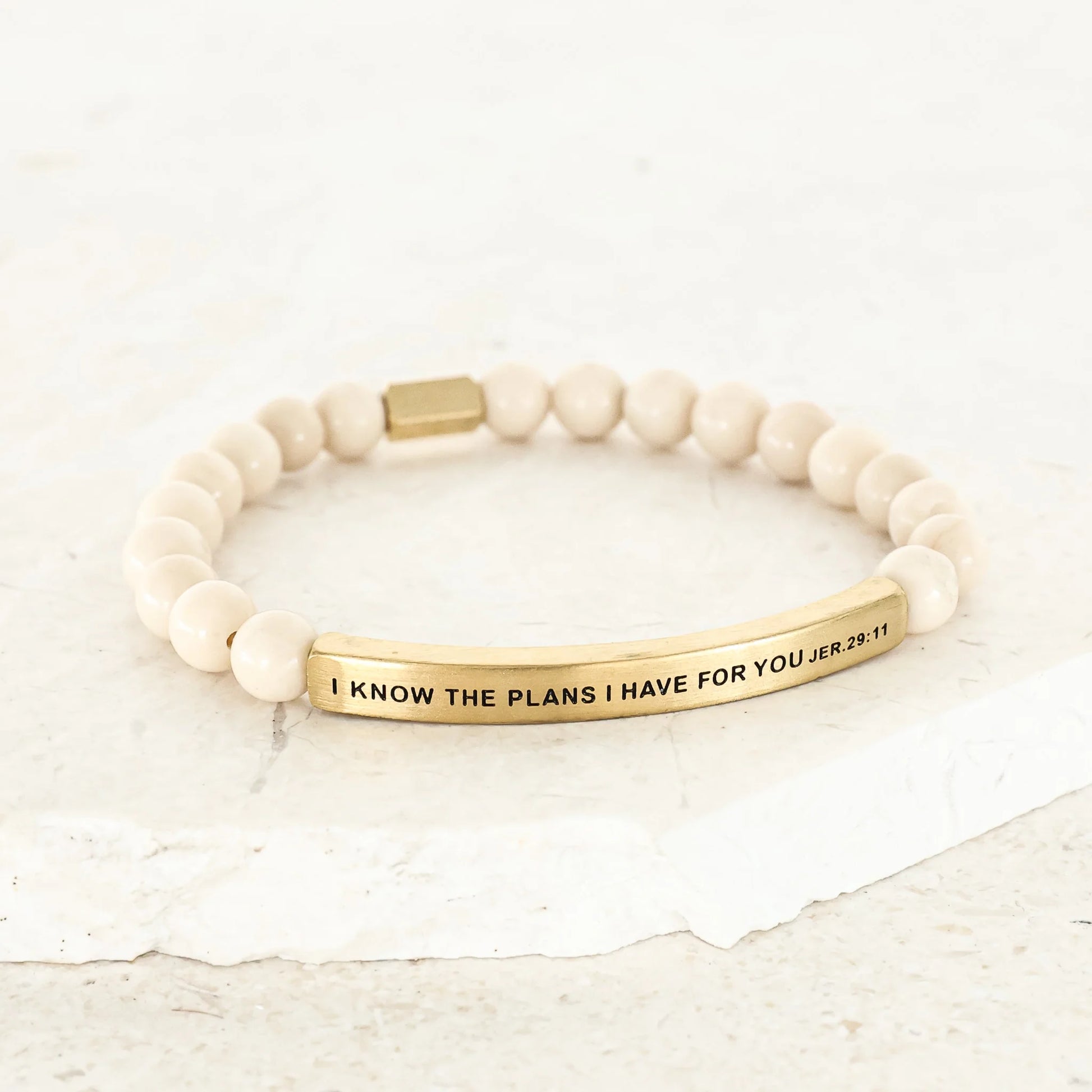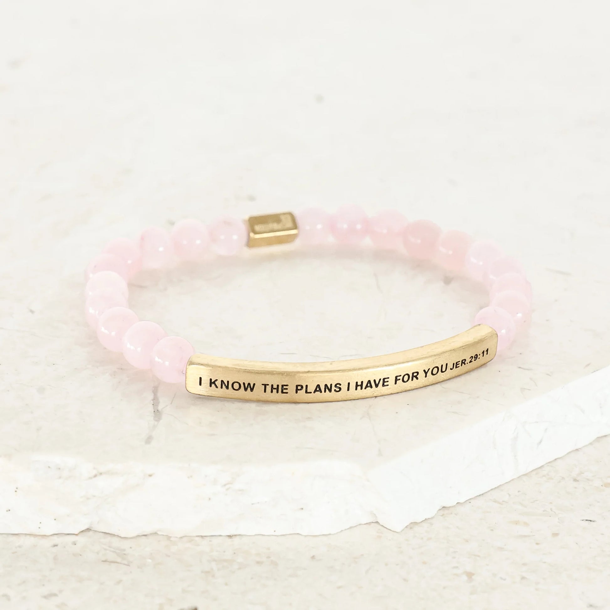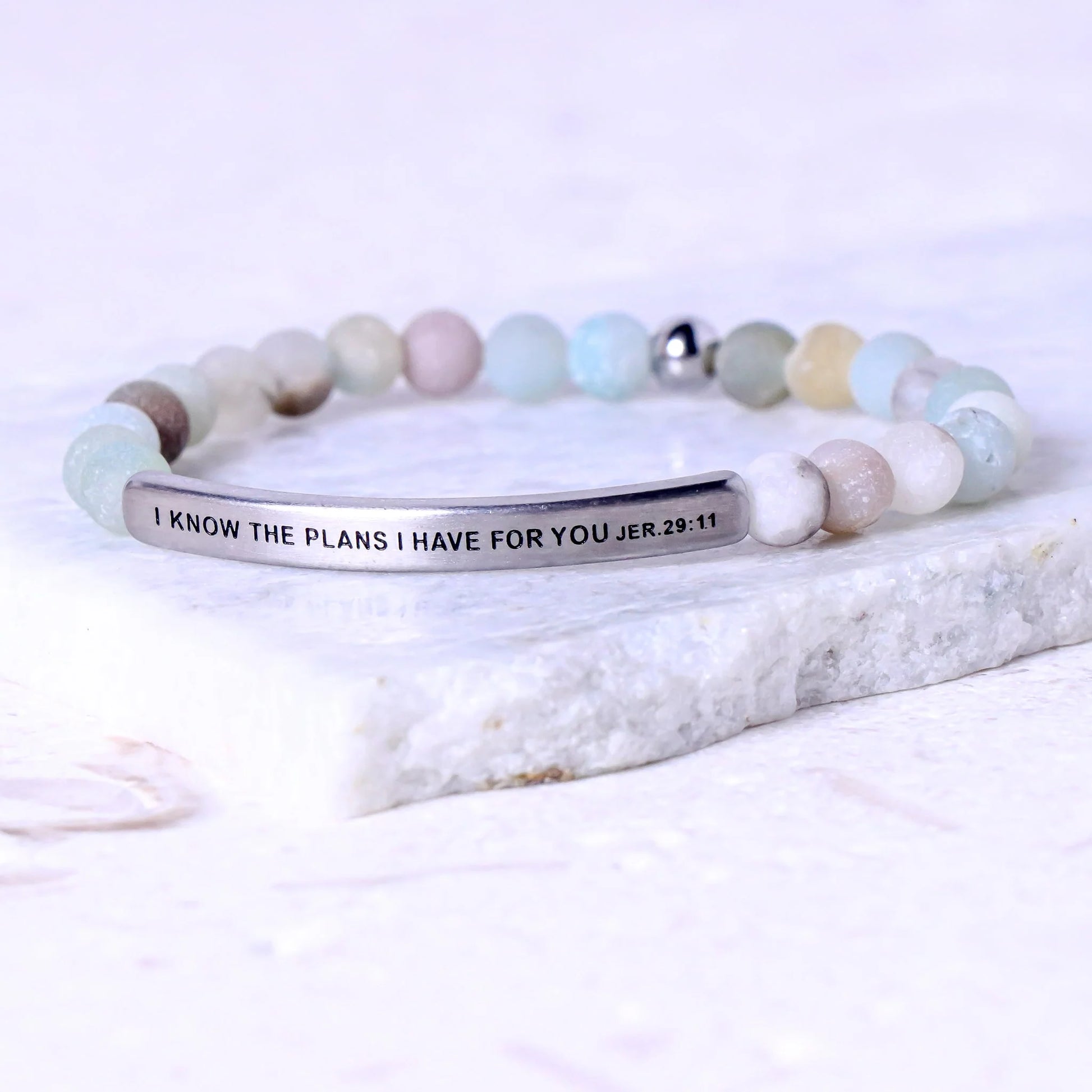 Our inspiration bracelets are beautiful reminders, crafted with 100% all-natural earth stone beads and an engraved stainless steel bar. Wear them throughout the day as a source of inspiration.