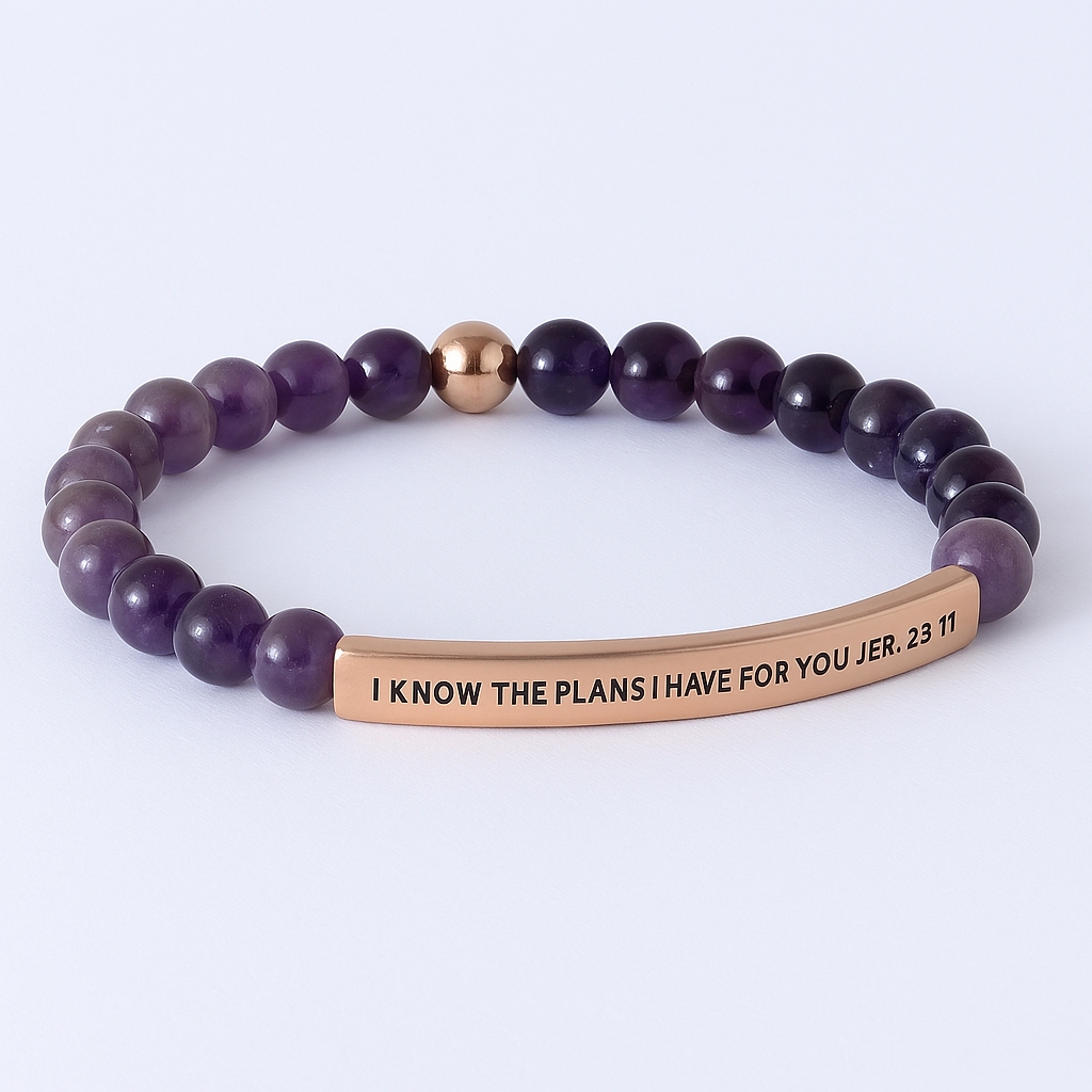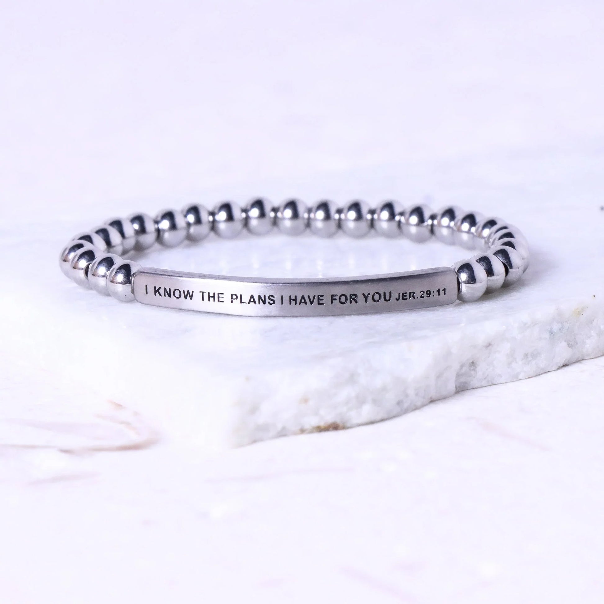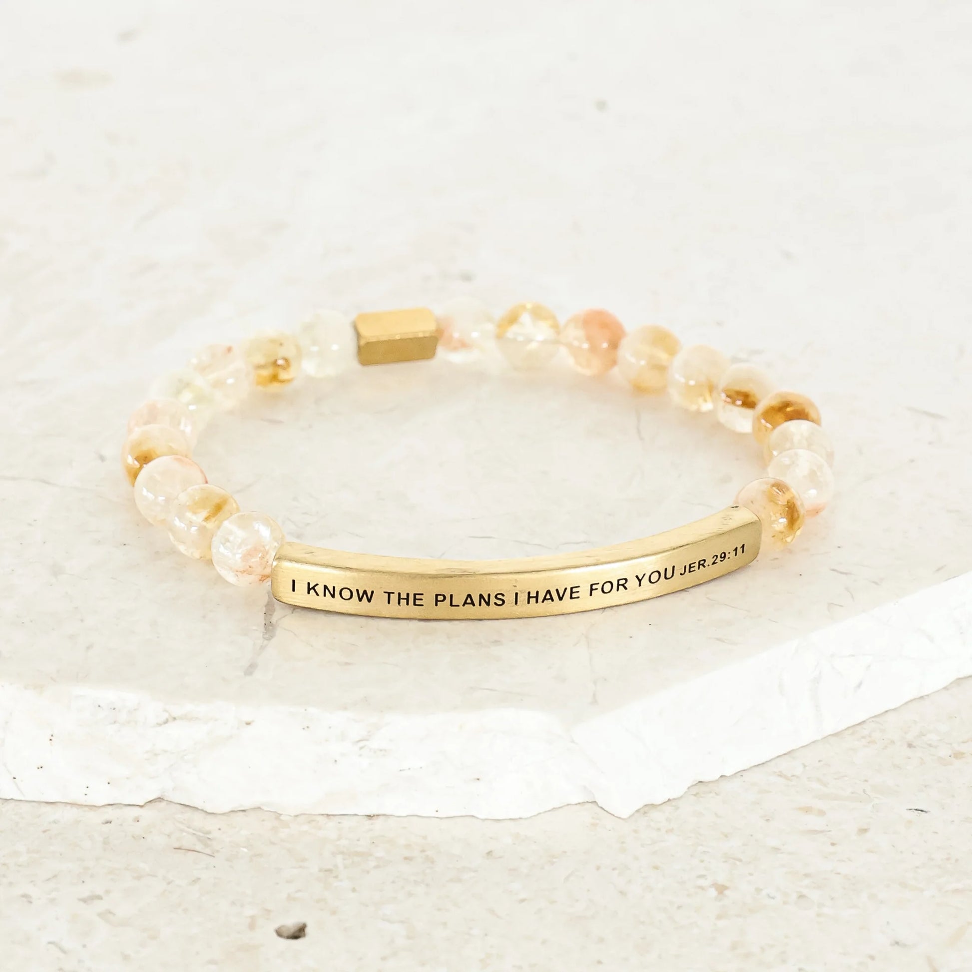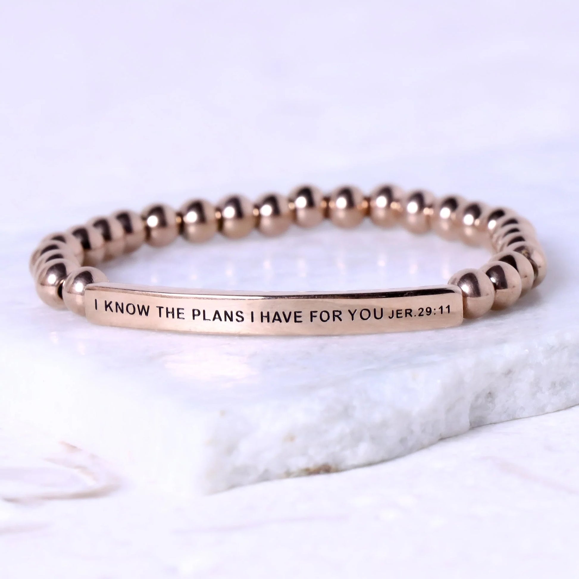 Our inspiration bracelets are beautiful reminders, crafted with 100% all-natural earth stone beads and an engraved stainless steel bar. Wear them throughout the day as a source of inspiration.